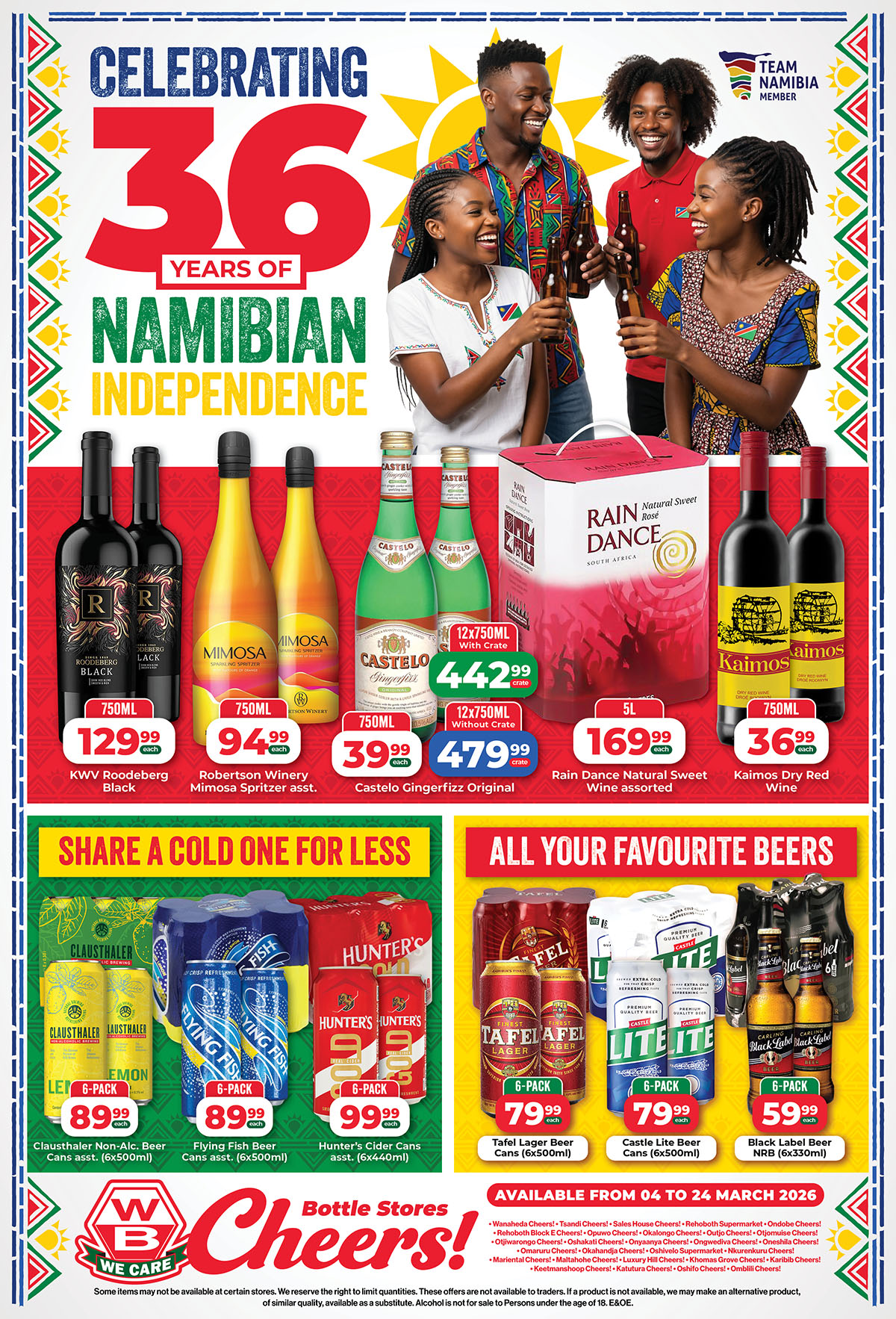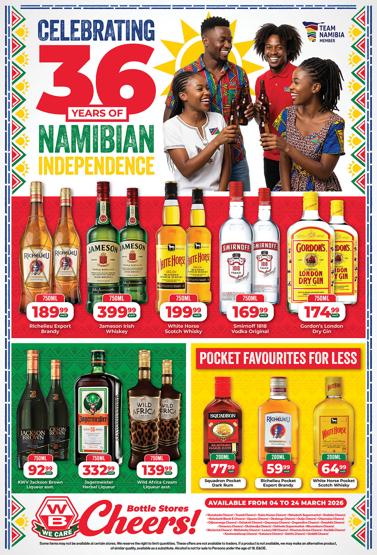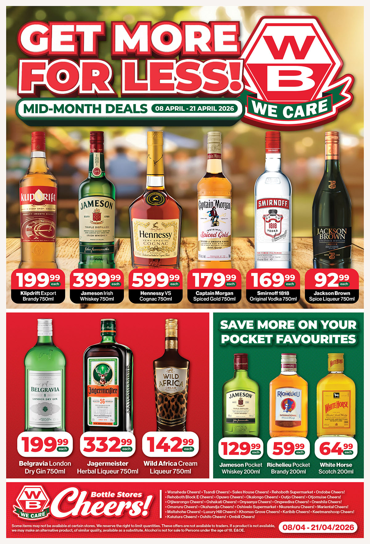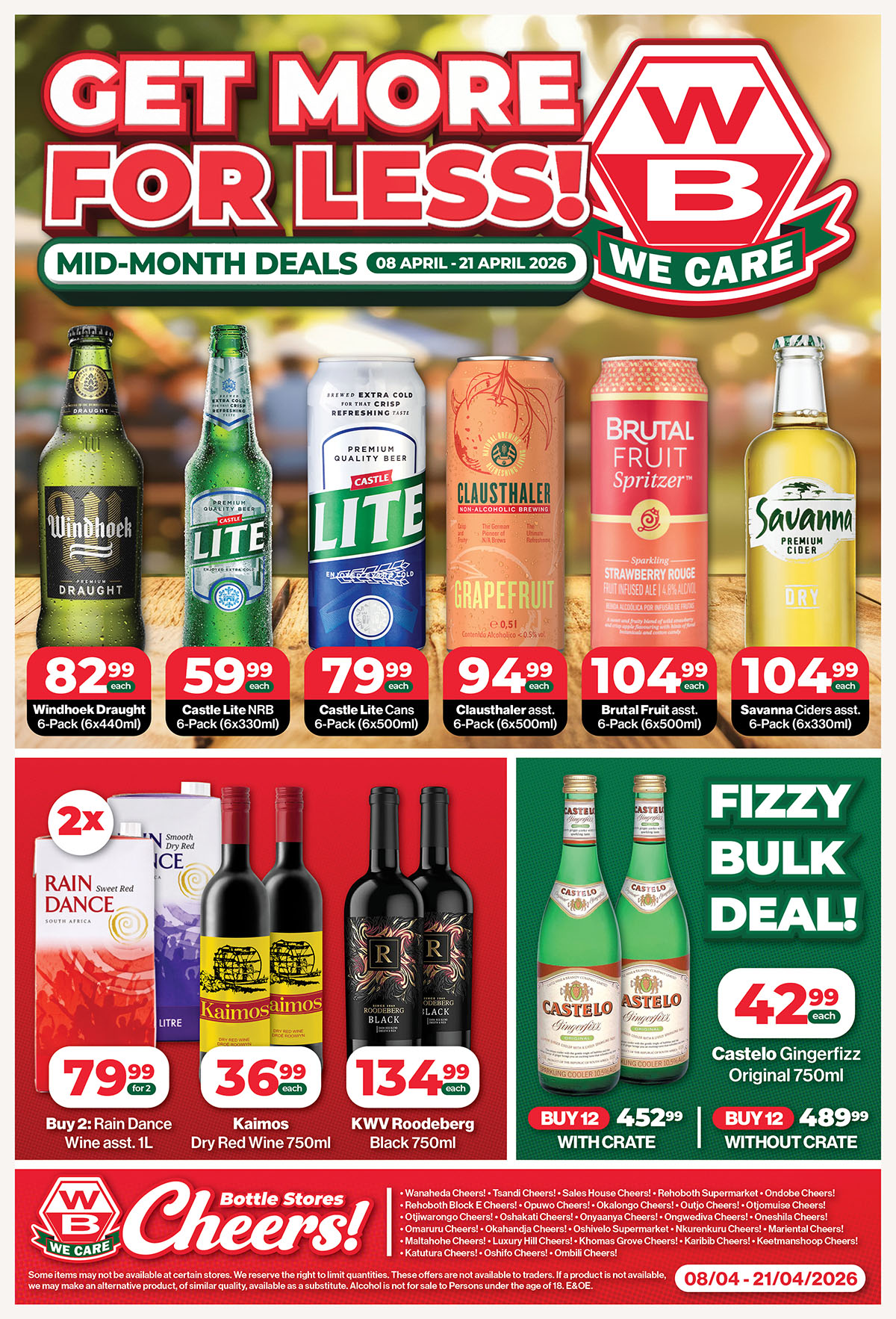 These offers are waiting for you at all WB Cheers! Bottle Stores: