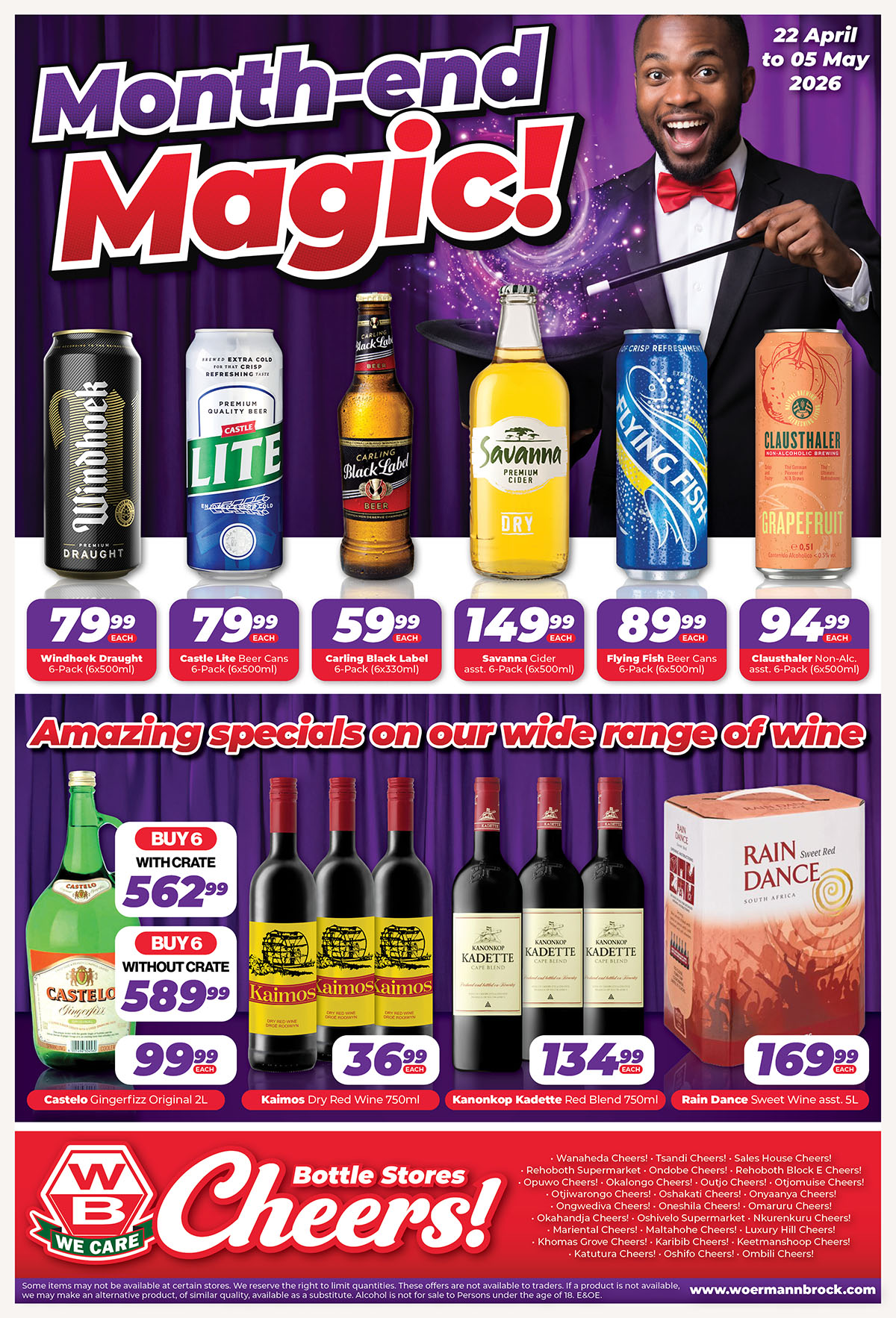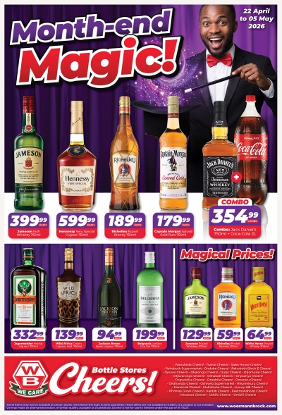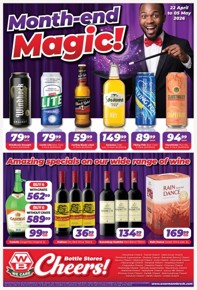 These offers are waiting for you at all WB Cheers! Bottle Stores: